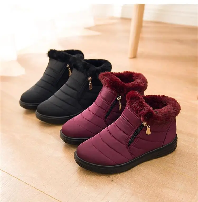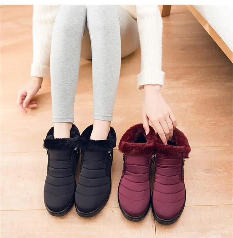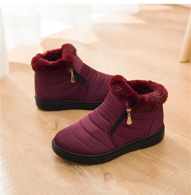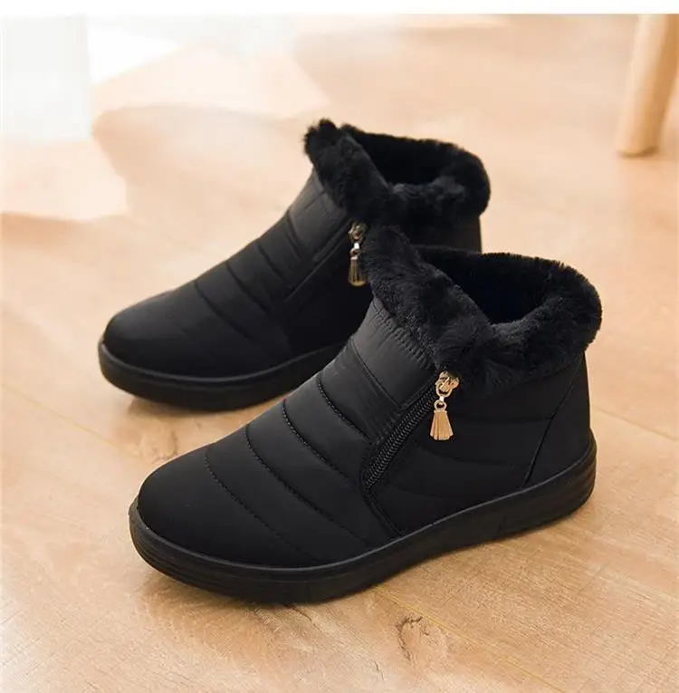 Женские ботильоны; Женские ботинки из мягкого хлопка; Женские ботинки на молнии сбоку; Водонепроницаемая обувь; Женские теплые меховые ботинки на плоской подошве; Кроссовки