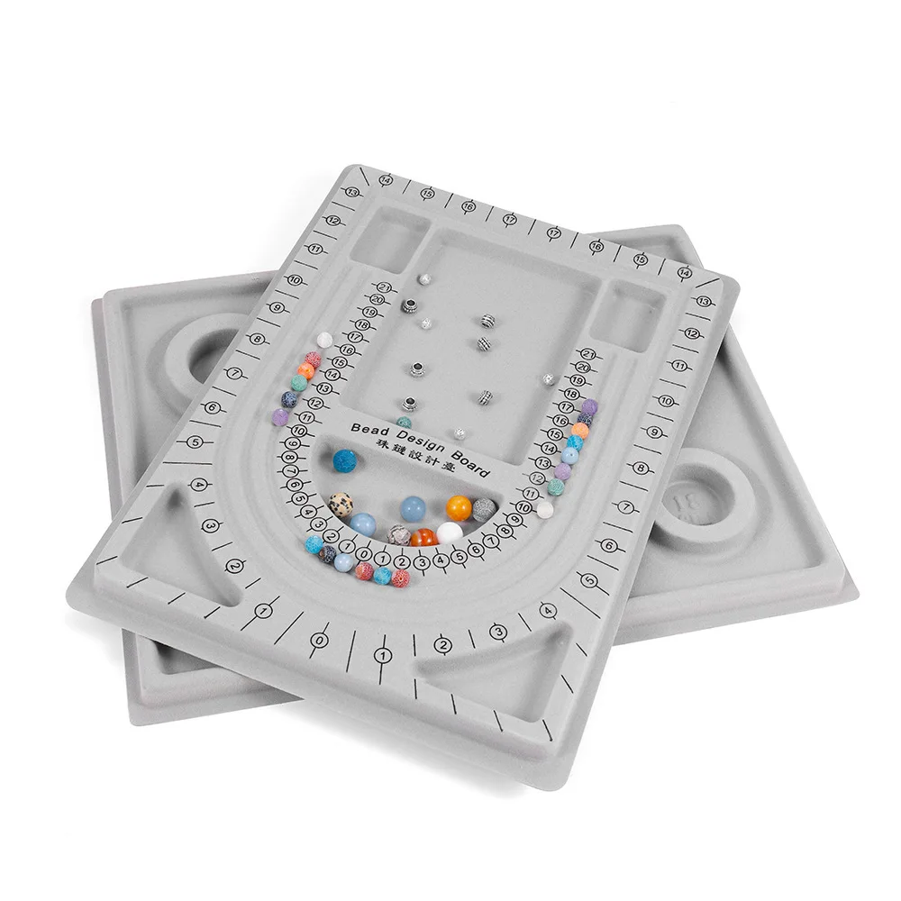 Серые флокированные доски для браслетов, органайзер для бисероплете...