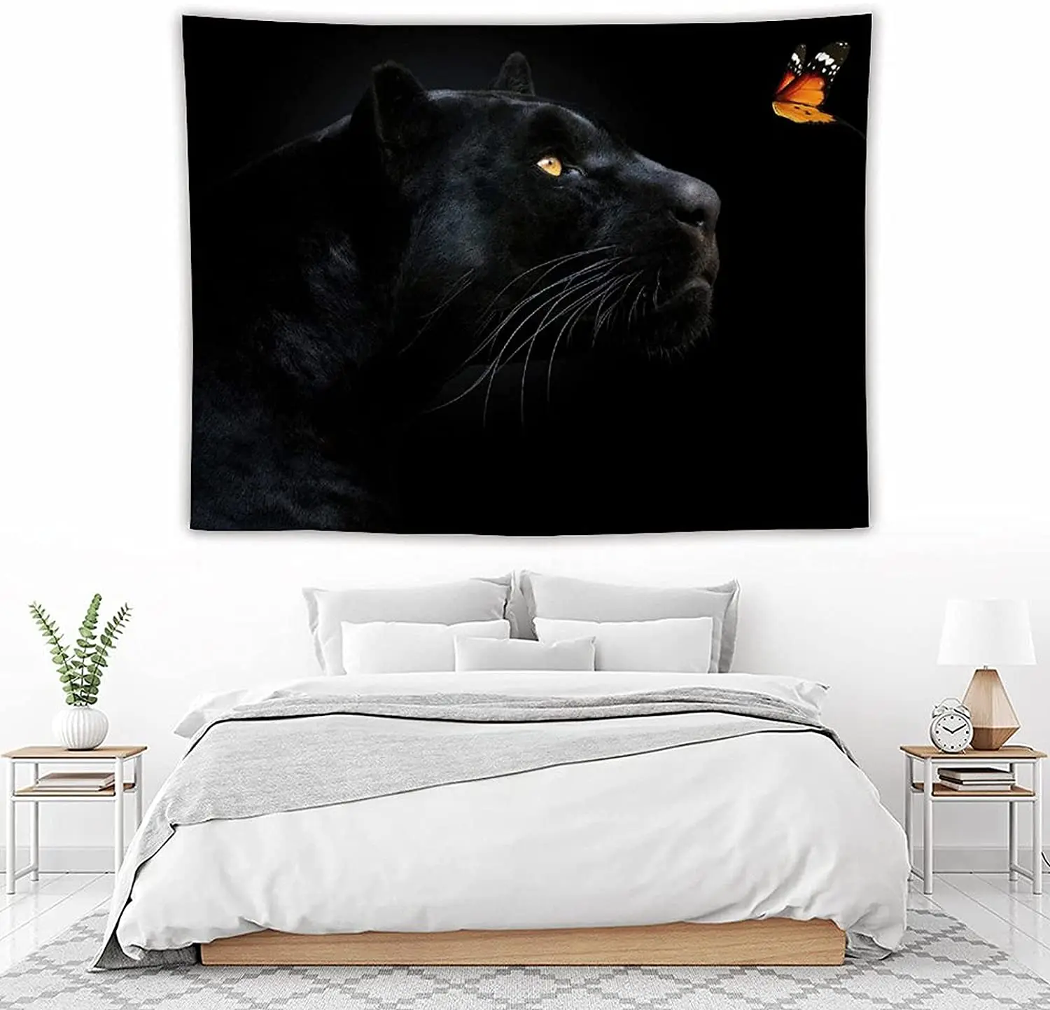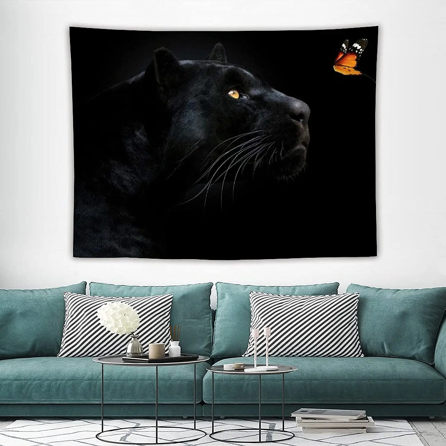 Постер черной Пантеры, Бабочка, черная красота, Дикий кот, гобелен для подростков, мальчиков, искусственный японский день рождения, Настенный декор