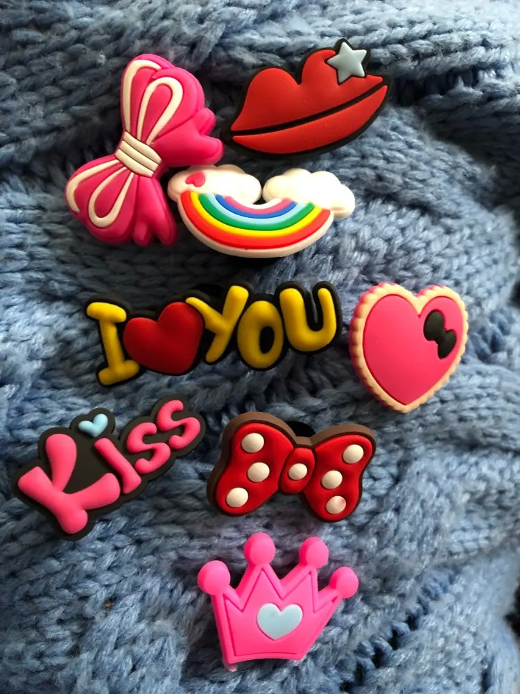 • Тип изделия: 2D подвески для обуви • Материал: ПВХ• Длина: 3-4 см • Ширина: 2 см • Толщина: 0,2 см• Посылка: Подарочный пакет/OPP пакет• Характеристики: подходит для обуви, браслета, сумки с отверстиями