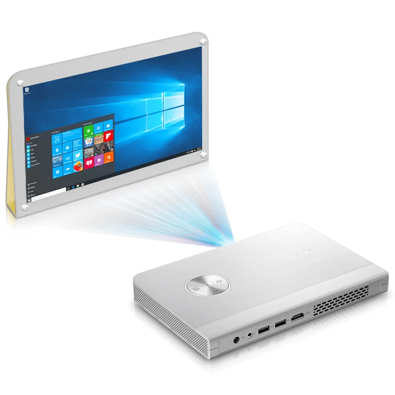 Детали Стандартная конфигурация Тип изделия Компьютер без экрана (умный портативный проектор Windows) Размер формы продукта 210*140*23 мм Вес формы продукта Блок устройства: 725 г, блок с подарочной коробкой и стандартными аксессуарами: 1570 г Цвет Устройства Черный (передняя и задняя панель: черный, кнопка: Черный) Встроенный динамик Встроенные цифровые усиленные водонепроницаемые колонки 2Wx 2 Тип батареи Литий-ионный полимерный аккумулятор Емкость аккумулятора 3,7 в/12000 мАч Срок службы батареи 1-2 часа Особенности батареи Защита от переразряда и перезарядки Электрическая мощность <38 Вт Электрический шум <30 дБ Оптическая конфигурация Детали Описание Техника отображения 0,3 "DMD, RGB-LED, TI DLP цифровая технология оптической обработки проекции Линза Линзы с высоким коэффициентом пропускания Яркость 270ANSI люмен Ровность освещения 98% Коэффициент динамической контрастности 5000:1 Нормальное разрешение 720P(1280*720),1080P, 2K, 4K доступны Цветовая гамма ≥ 120% NTSC Размер изображения 10 - 180 дюймов Светодиодная жизнь 30000 часов Коэффициент выброса 1,6: 1 Фокус Электрический фокус Off-axis 100% Коррекция трапецеидальных искажений По вертикали ± 40 ° Режим проекции Передний/задний/потолочный Конфигурация программного обеспечения Детали Описание Версия ОС Windows 10 Home 32bit /64bit активирован, английская версия Конфигурация оборудования системы Детали Описание Тип ЦПУ Intel®Четырехъядерный процессор Atom Скорость ЦП 1,33 ГГц-1,84 ГГц RAM DDR3L 2 Гб ROM Emmc 64 ГБ Формат видео MP4 / 3GP / MOV / MKV / AVI / FLV / MPEG Аудиоформат FLAC / APE / AAC / MKA / OGG / MIDI / M4A / AMR Сетевые соединения Детали Описание Модуль Wi-Fi Wi-Fi 802,11 (a/b/g/n/ac) Частота 2,4 и 5 ГГц Встроенный Bluetooth Расстояние передачи BT4.0 (BLE) Класс 1: 10 м Конфигурация интерфейса Детали Описание Интерфейс USB USB 2,0*1 (хост) для windows OTG x1 Интерфейс USB USB 3,0*1 (хост) для windows OTG x1 Видеовыход HDMI HDMI 1.4a x1, Поддержка 480P, 720P, 1080P Аудиовыход для наушников 3,5 мм стандартный наушник jack x1 Разъем питания постоянного тока Разъем питания постоянного тока 19 в а x1 Стандартные аксессуары Детали Описание Размер пульта дистанционного управления 152*47*8 мм Цвет пульта дистанционного управления Черный (передняя и задняя панель: черная, кнопка: черная) Встроенный пульт дистанционного управления Расстояние передачи беспроводной технологии 2,4G: 10 м Функциональная кнопка дистанционного управления Направление * 4 Air Mouse * 3 VOL * 3 Power * 1 Щелчок для подключения к Интернету * 1 источник * 1 оптический компонент вкл/выкл * 1 меню * 1 назад * 1 Автофокус * 1