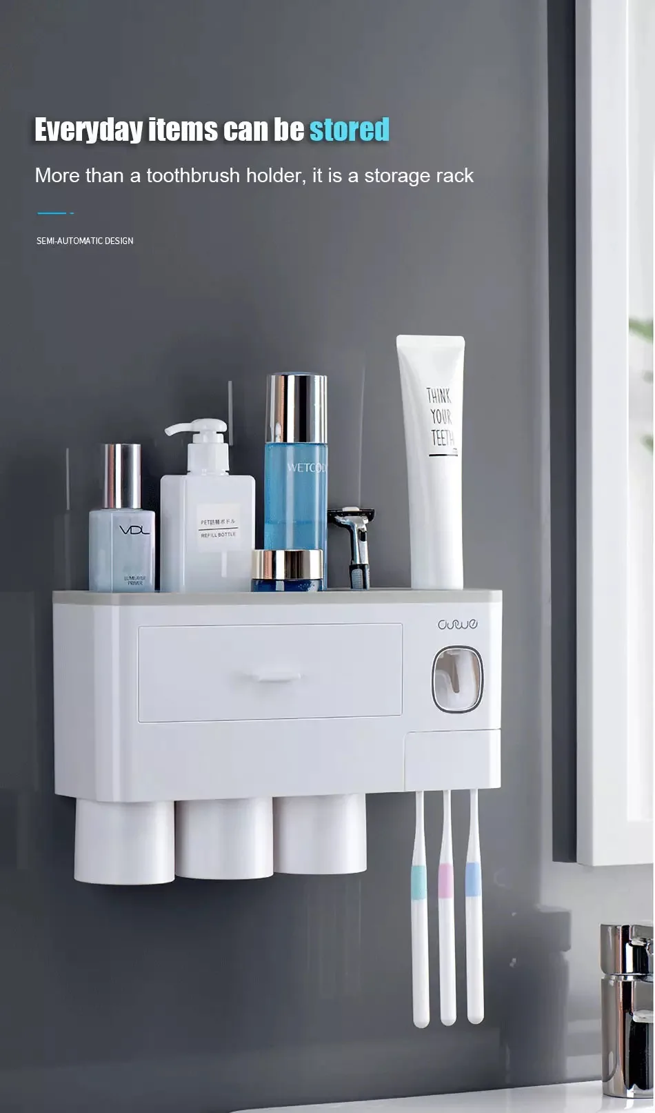 Настенный держатель для зубных щеток, 3 цвета, ONEUP