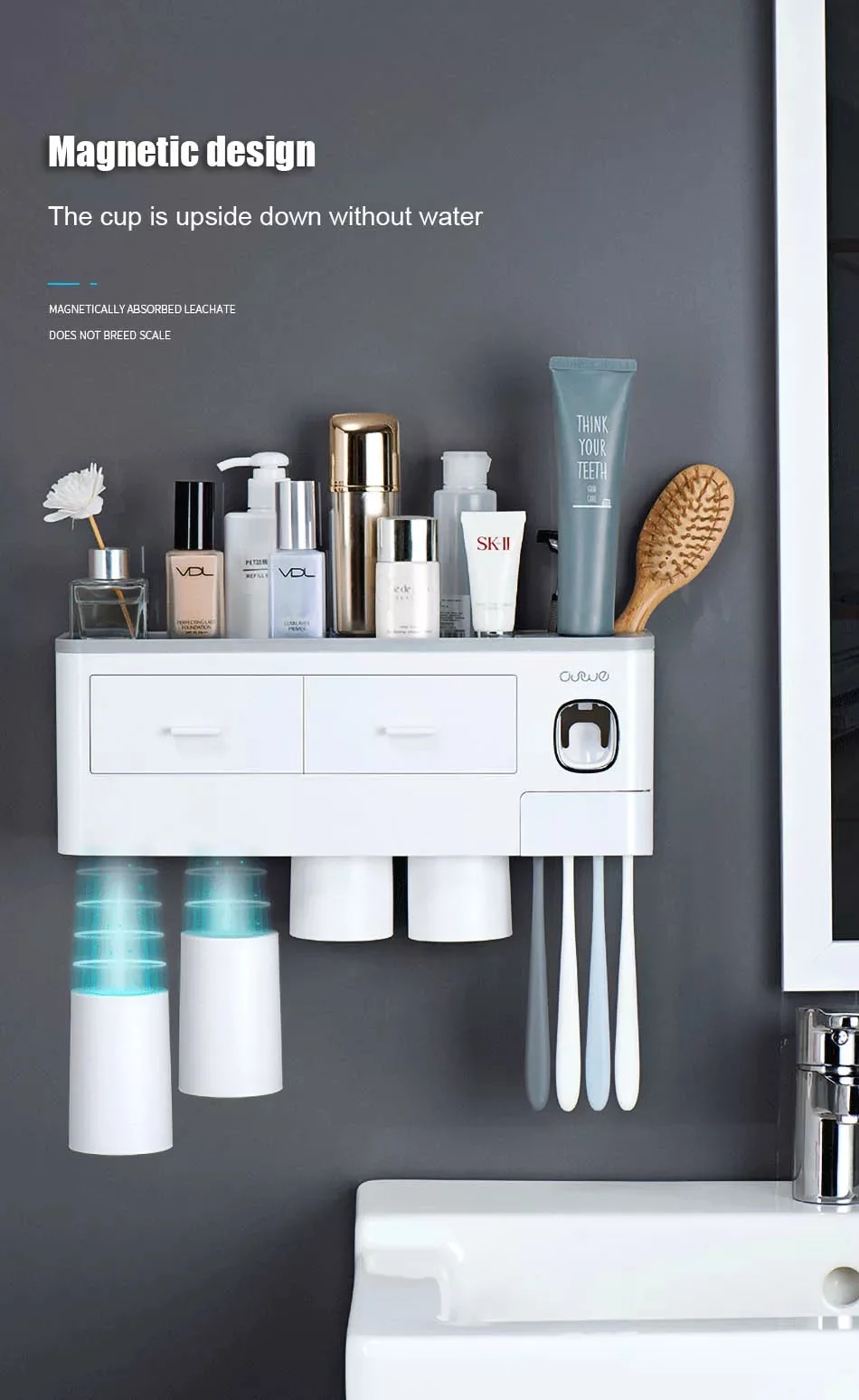 1. Магнитная конструкция, чашка перевернута вверх дном без воды, не размножает накипи. Несколько положений зубной щетки, предотвращает перекрестное заражение, чистая и Гигиеничная