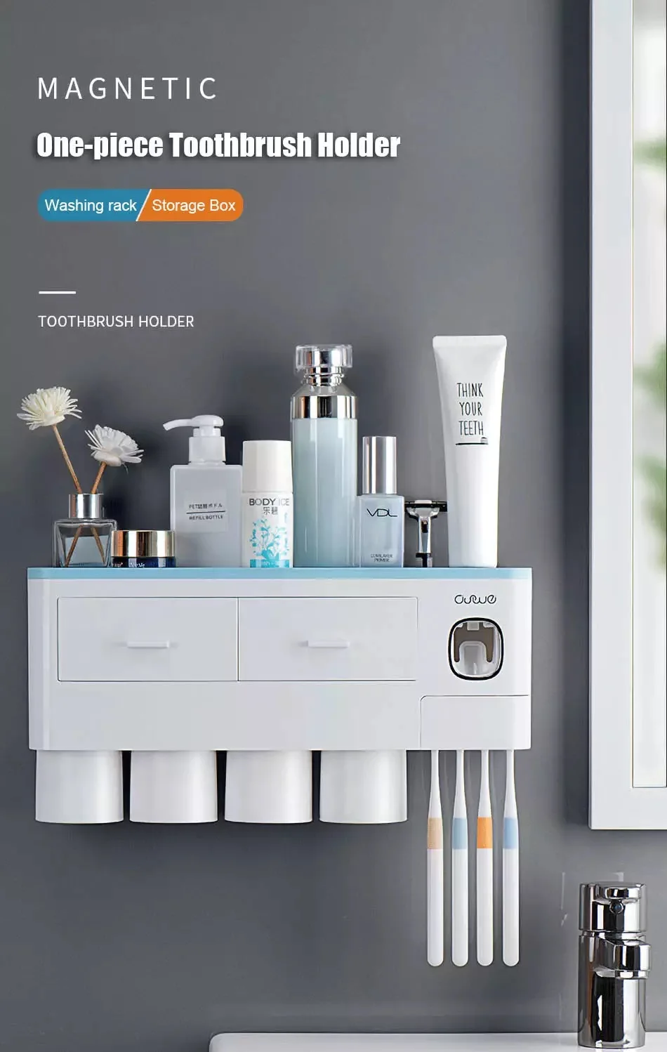 Держатель для зубных щеток BAISPO с магнитной адсорбцией, автоматич...