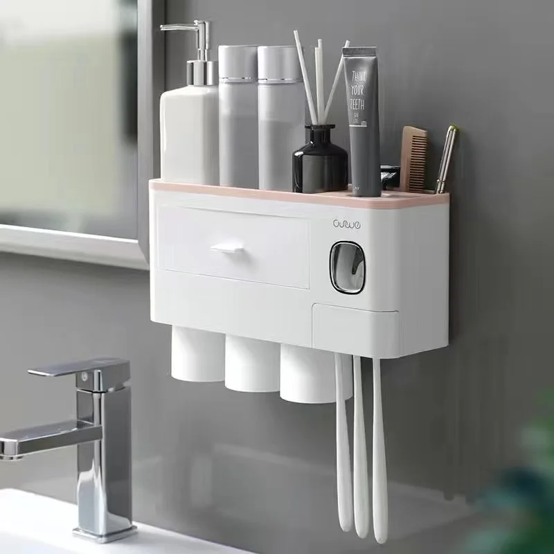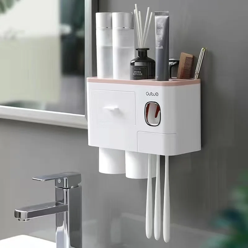 Магнитный адсорбционный инвертированный держатель для зубной щетки, двойной автоматический диспенсер для зубной пасты, стеллаж для хранения, аксессуары для ванной комнаты