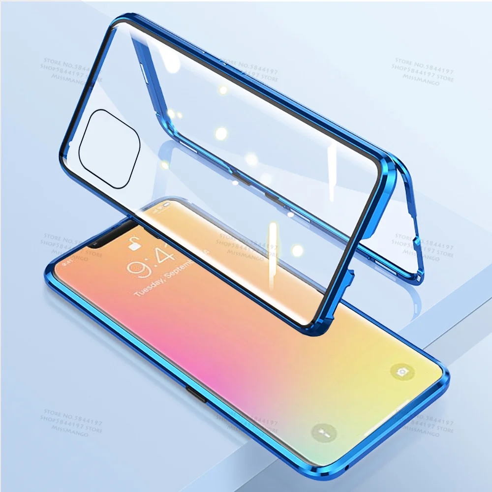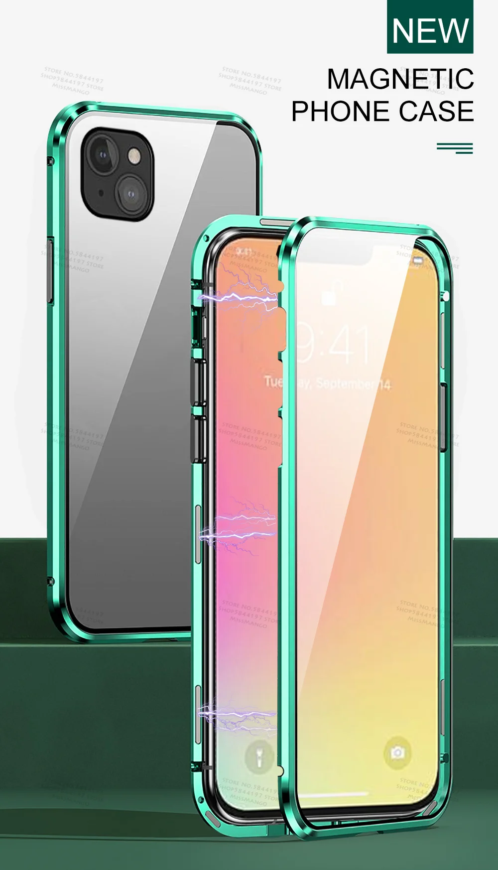 Двухсторонний Магнитный 360 Защитный чехол для iPhone 13 12 Мини Закаленное стекло металлический чехол для apple iphone 13 12 11 pro max Shell
