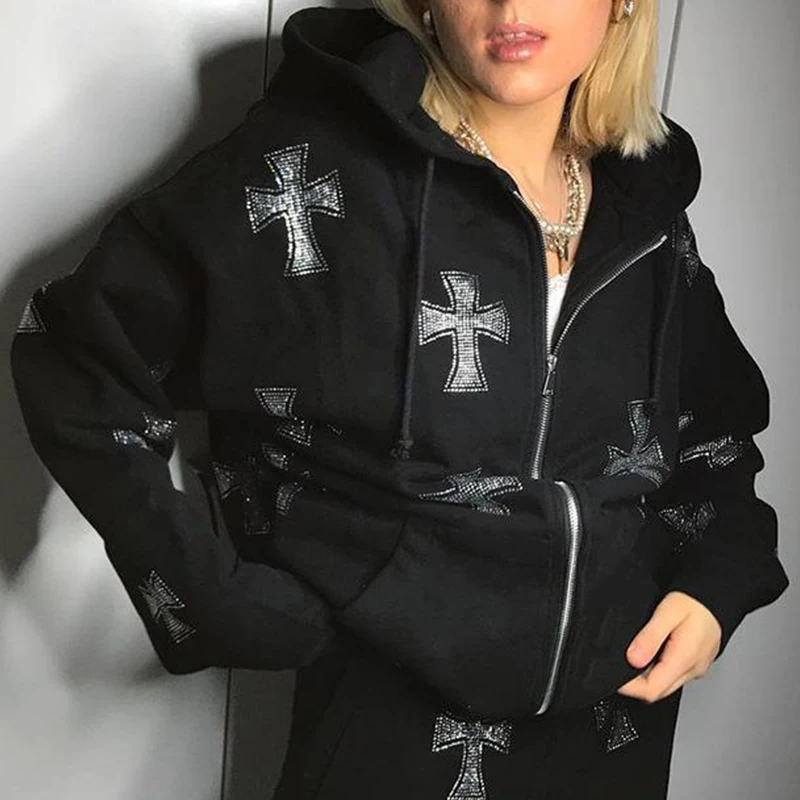 Женские толстовки стразы, Готическая уличная одежда с длинным рукав...