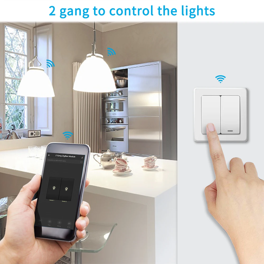 Модуль работает с ручным переключателем на стене, поэтому после установки модуля в блок переключателей, оригинальный механический переключатель все еще работает.Приложение дистанционного управления, голосовое управление, настенный выключатель работает.