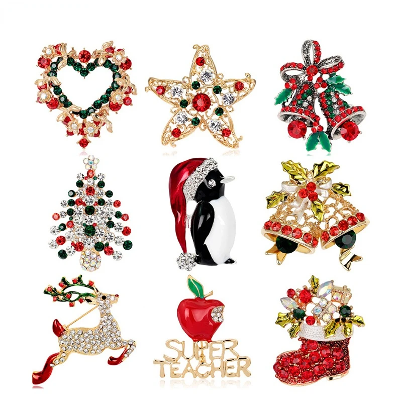 Новогодняя, Рождественская брошь, цветок, венок, колокольчики на елку, лось, эмалевые броши, булавки, для женщин и мужчин, изящное Ювелирное Украшение, рождественские подарки