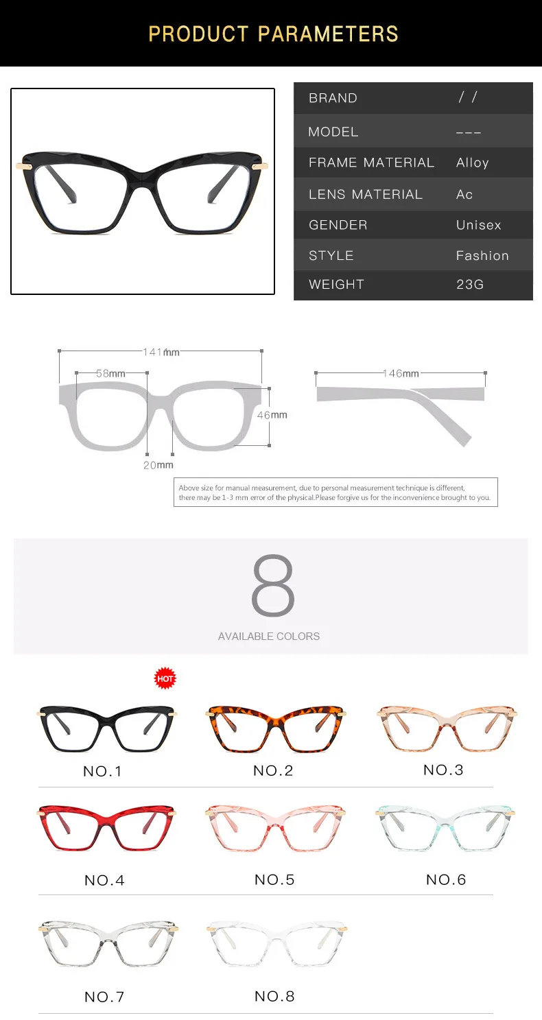 Очки кошачий глаз женские, винтажные оптические очки большого размера для компьютера, с защитой от сисветильник, с блокировкой зеркала для чтения