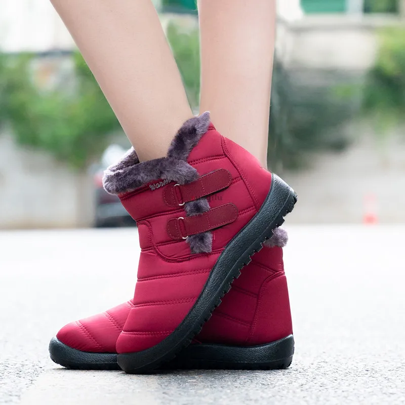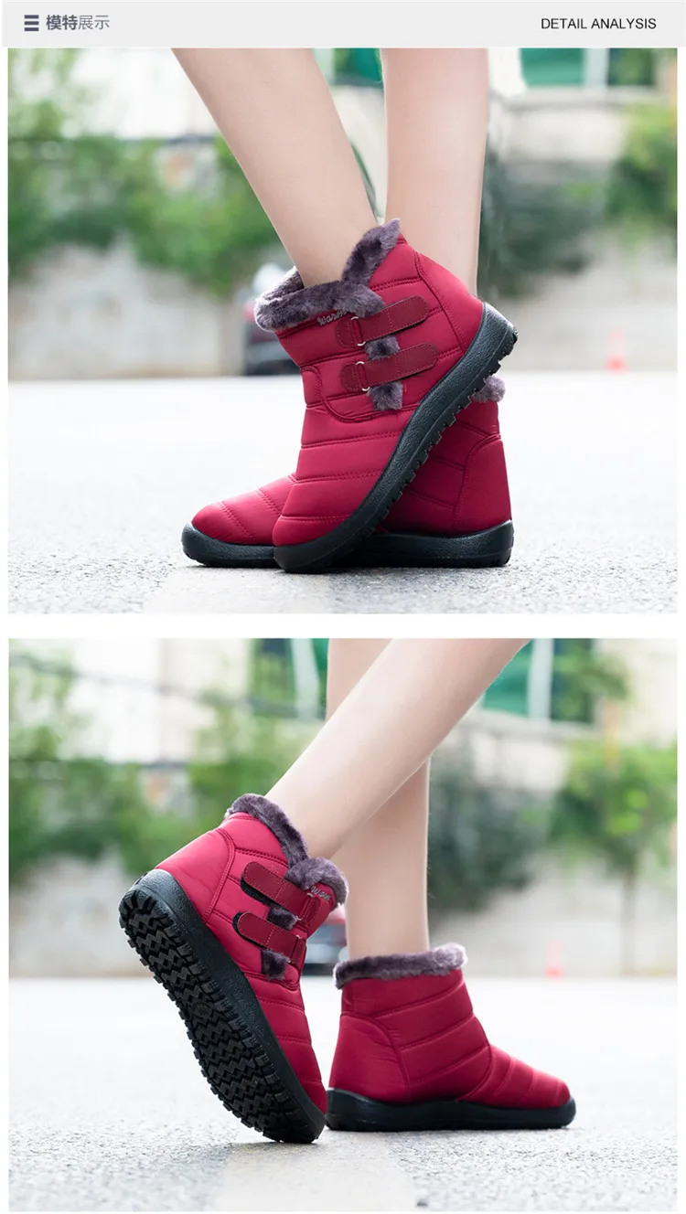 Водонепроницаемые женские ботинки, легкие меховые зимние ботинки, теплая зимняя обувь, женские ботильоны, черные, красные зимние ботинки