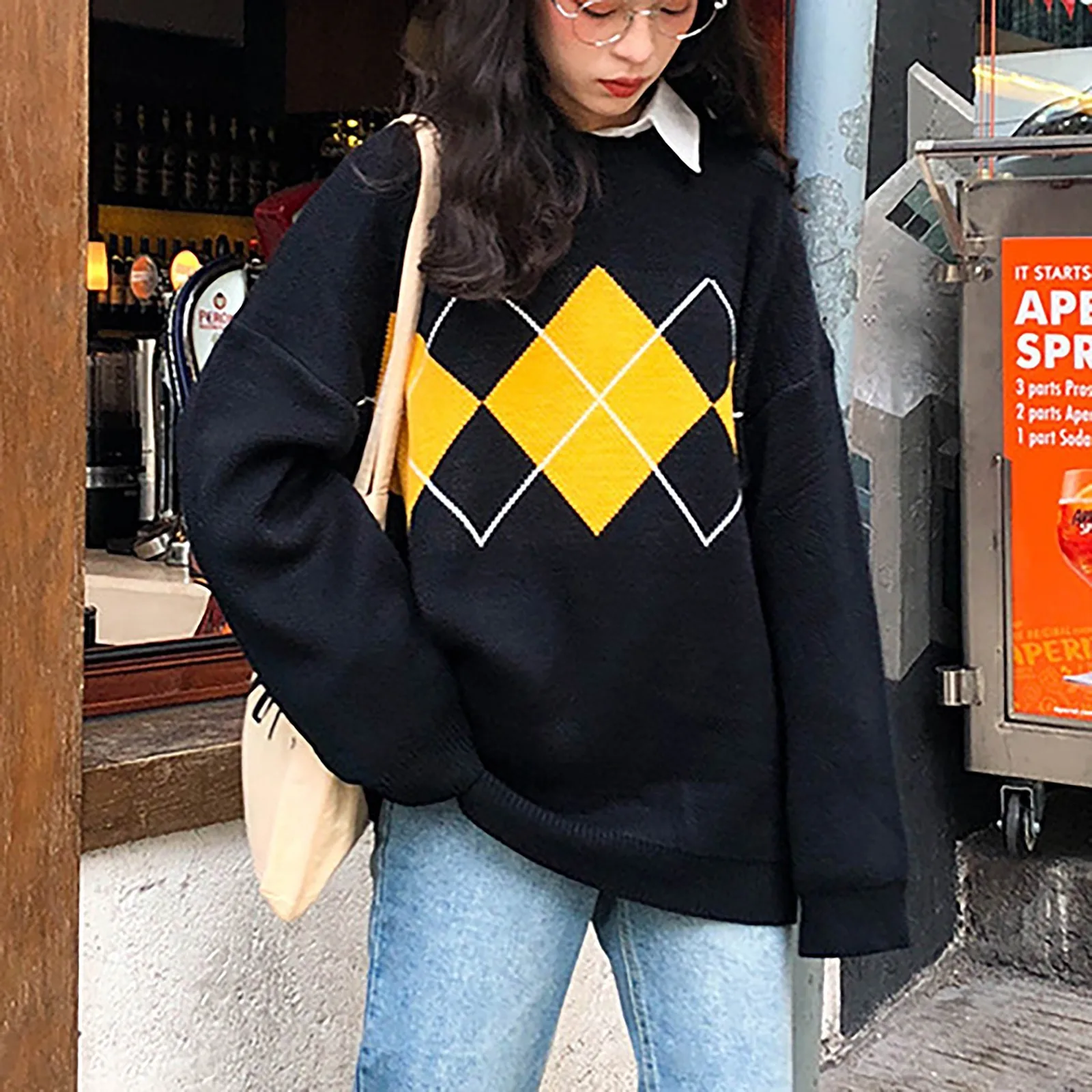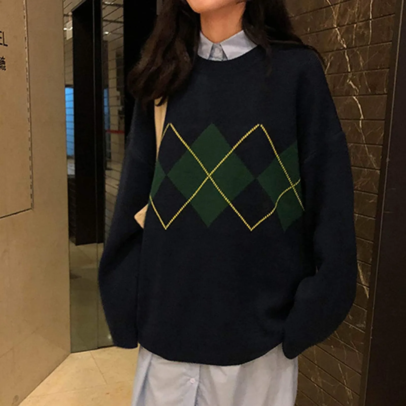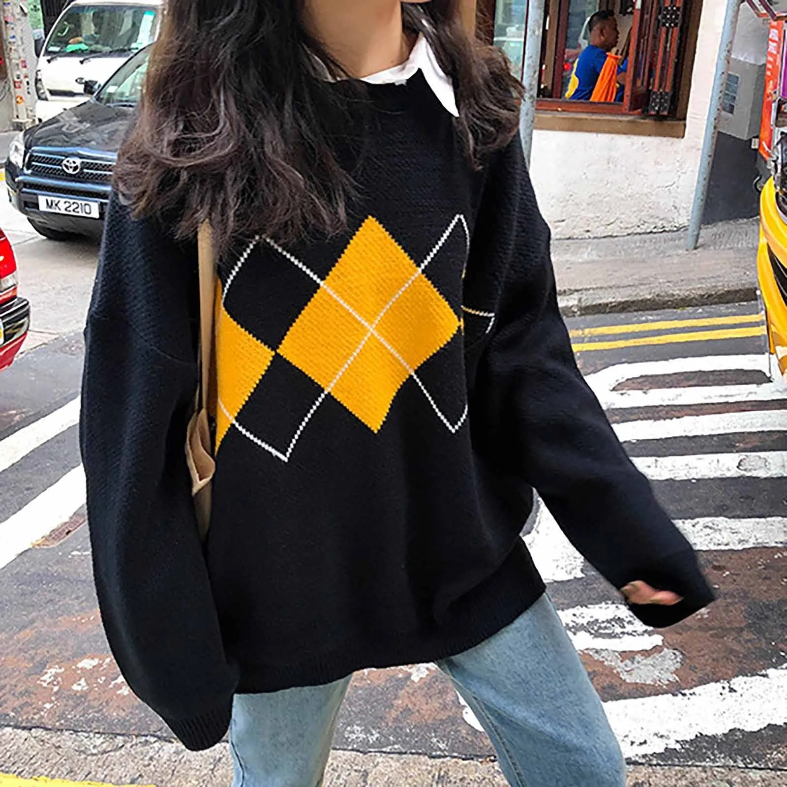 Свитеры, пуловеры, женские зимние пуловеры, зимние пуловеры с геометрическим рисунком в стиле колледжа