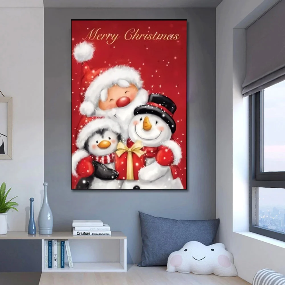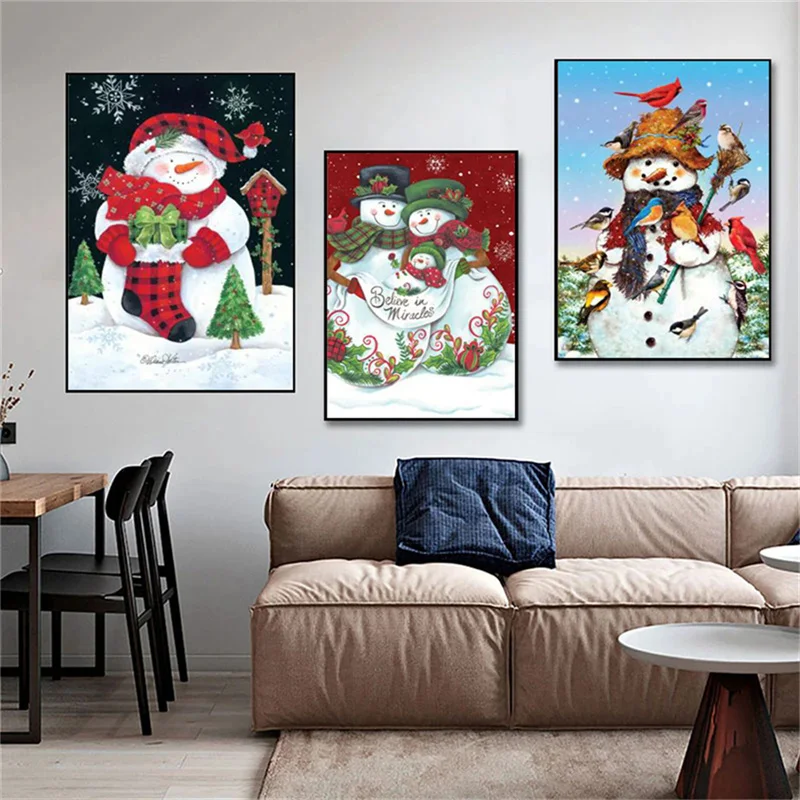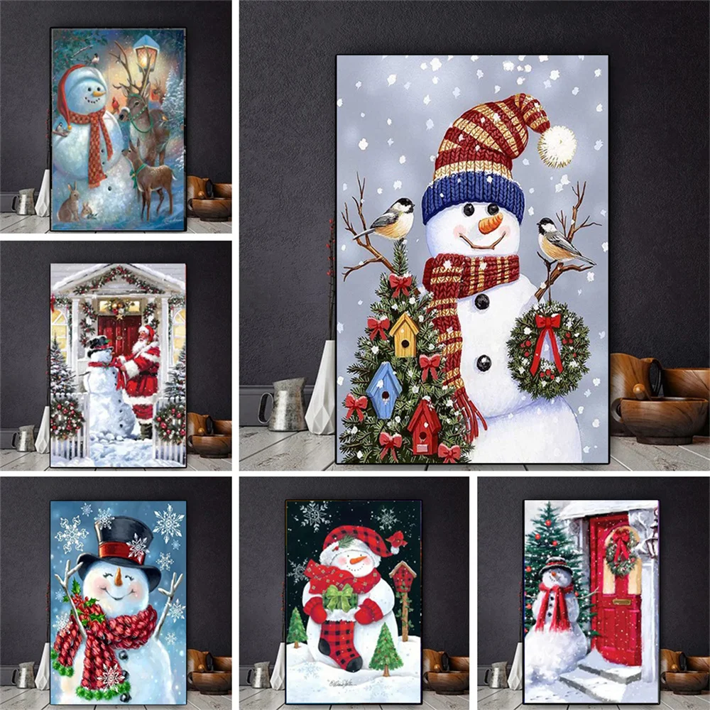 Милый снеговик с шапкой и шарфом, картины на холсте, мультяшный постер и печать на стене, картина для гостиной, Рождественский домашний декор