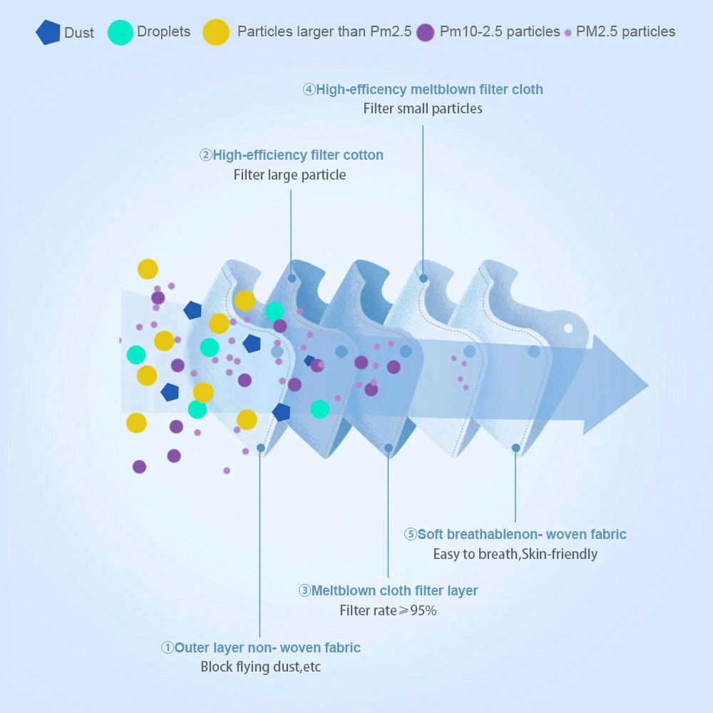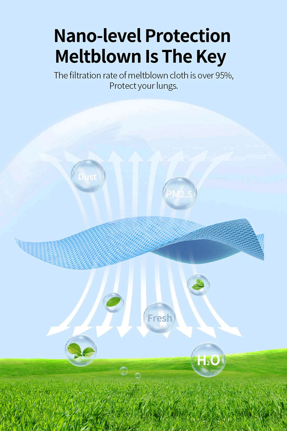 <Материал: Изготовлен из высококачественного материала, приятный для кожи, дышащий.<Дышащие: регулируемые зажимы для носа обеспечивают плотное уплотнение.<Многоцелевой: эффективность фильтрации до 95%<Хорошее качество: полностью герметичный для лучшей защиты. Дышащие и удобные в носке.<Удобно носить: эластичные ушные петли без давления на уши.<Применение: Идеально подходит для повседневной деятельности, такой как Спорт на открытом воздухе, прогулки, Пешие прогулки, езда, прогулки, работа и многое другое.