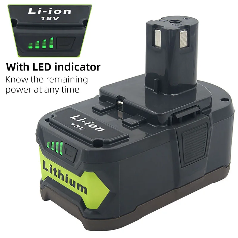 Модель: аккумуляторная батарея для беспроводных электроинструментов RyobiНоминальное напряжение: 18 вНоминальная емкость: 8000 мАч/6000 мАчТип батареи: литий-ионныйВес: около 750 гБольше энергии, больше времени работы и увеличенная долговечность.Четырехступенчатый топливный датчик 100, 75, 50 и 25 процентовРаботает для всех беспроводных электроинструментов Ryobi 18V ONE +. (Примечание: Не подходит для ryobi аккумуляторная пила P551, ryobi 18v Радио, лампы, например, ryobi P742 ryobi P746)Оснащен защитой звезды от перезарядки, перегрузки, перегрева и короткого замыкания. Надежный аккумулятор Ryobi обеспечивает вашу безопасность.Продукция сертифицирована CE,UL, FCC и ROHS.Технология IntelliCell контролирует и балансирует отдельные ячейки.