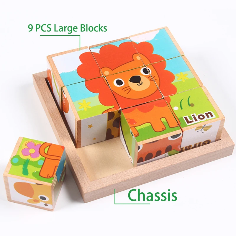 9 шт., деревянные кубики с деревянной основой