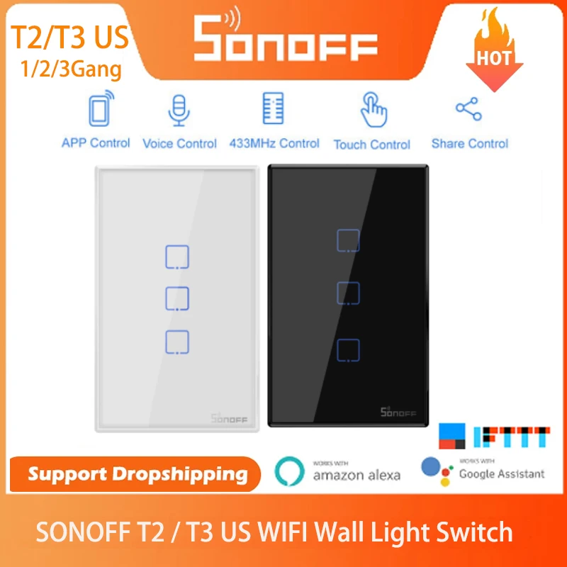 Умный настенный сенсорный выключатель SONOFF T2T3, США, 123 клавиши, Wi-Fi, домашняя Автоматизация через приложение Ewelink, голосовое управлениесенсорное управление, работает с Alexa Google Home
