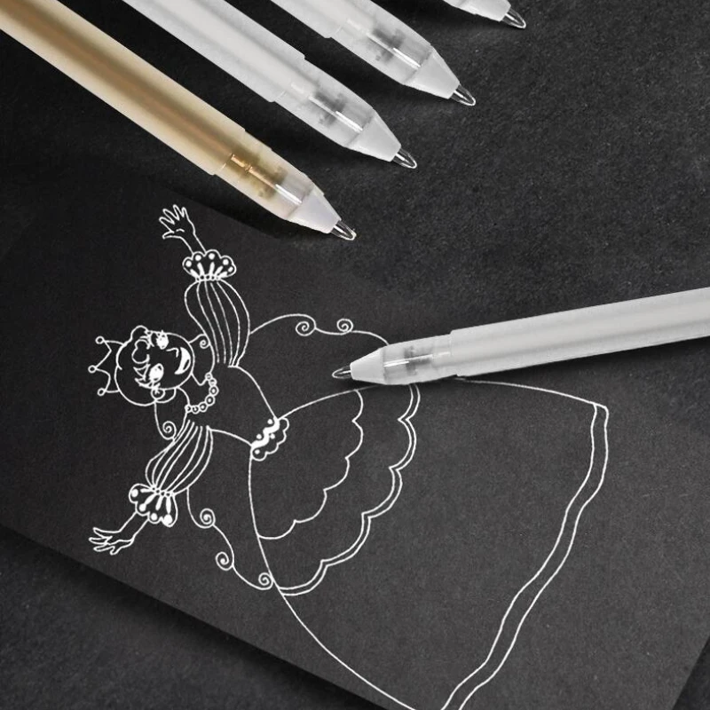 Черные стержни для каллиграфии, 2 шт. + 50 шт.набор, золотыебелыеСеребристые стержни для анимационного дизайна, 0,8 мм