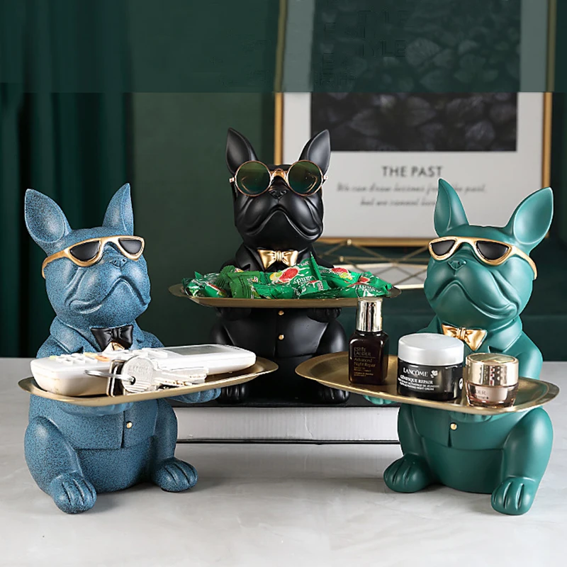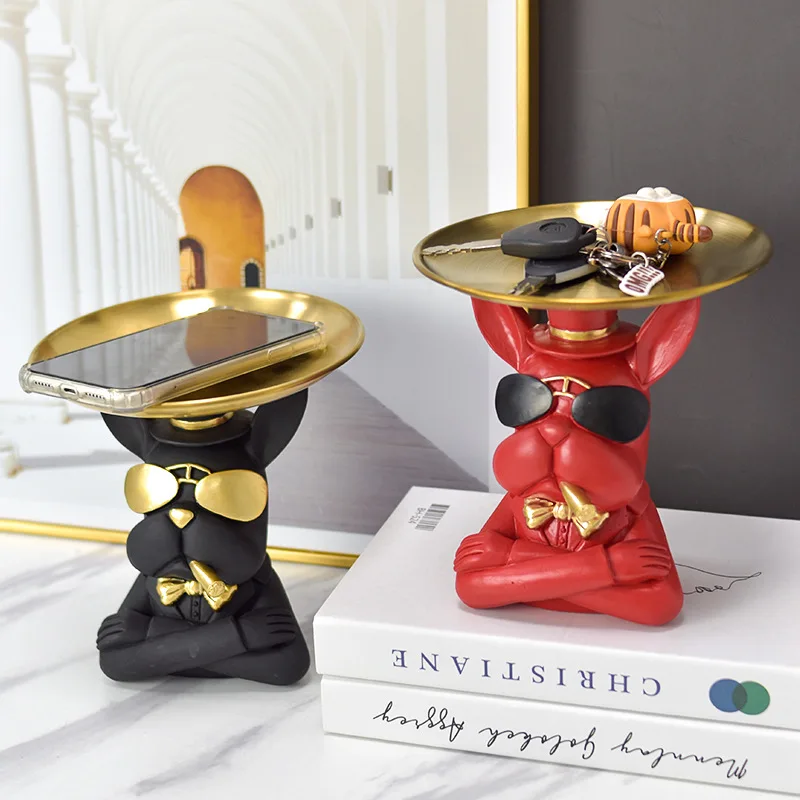 Скандинавская скульптура французского бульдога, настольный поднос для хранения, статуя собаки, хранение ювелирных изделий, ключей, банкнот для монет, украшение для стола, домашнее художественное украшение