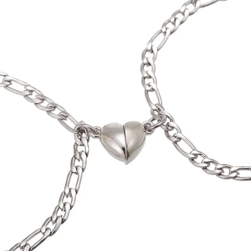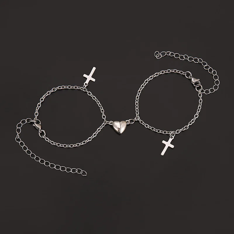 Браслет Магнитный в форме сердца для пар, Ювелирное Украшение из нержавеющей стали в сочетании с крестом, 2 шт.