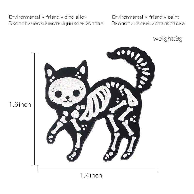 Брошь из металлического сплава с изображением черной кошки скелета ...