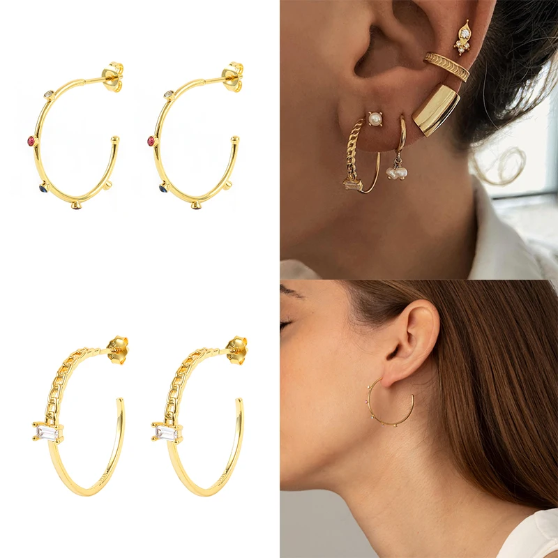 AIDE 18k золотой пирсинг серьги гвоздики для женщин лето цвет розовый циркон крюк серьги ювелирные изделия Bijoux Femme Cartilage Joyero