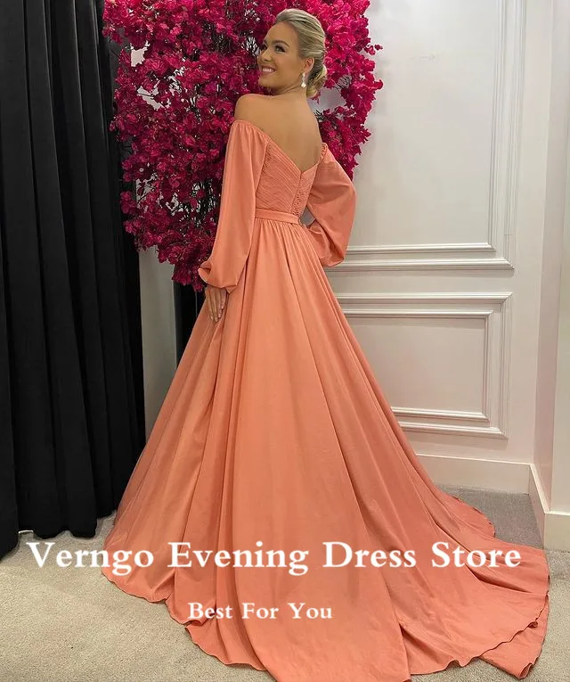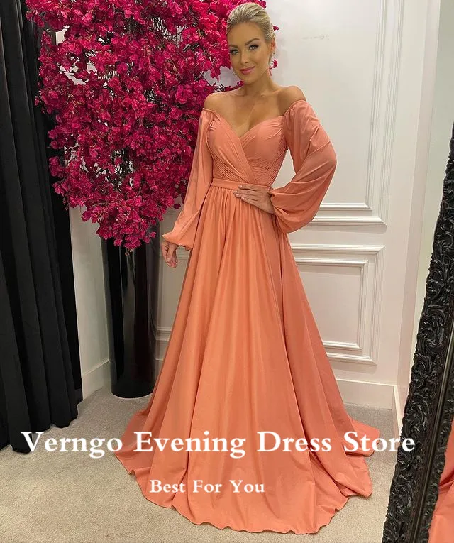 Платье на выпускной Verngo с открытыми плечами, длинными рукавами-фонариками, а-силуэт, в пол, женское простое вечернее платье