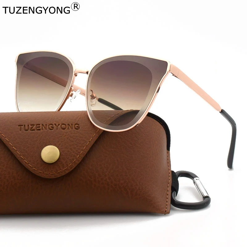 TUZENGYONG 2022 Новые солнцезащитные очки кошачий глаз металлическая оправа очки фирменный дизайн женские модные градиентные солнцезащитные очки UV400 для предотвращения бликов