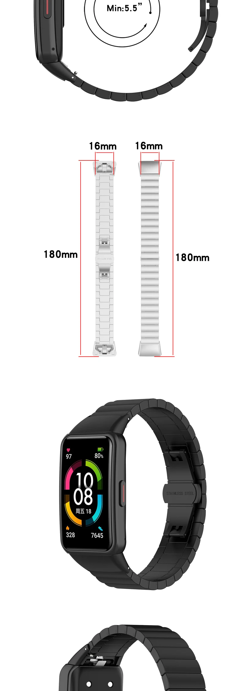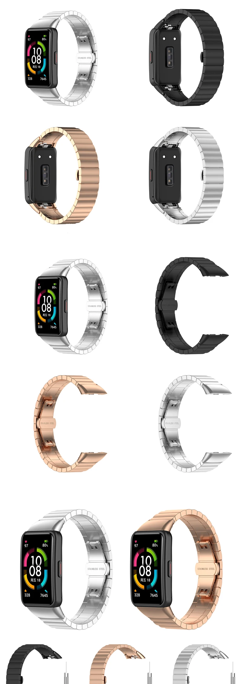 Ремешок из нержавеющей стали для наручных часов Huawei Band6 Honor ...
