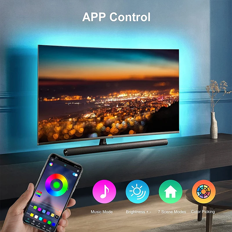 Светодиодная лента для подсветки телевизора, совместимая с USB, Bluetooth, RGB 2835 Светодиодный светодиодные лампы для комнаты, настенная Гибкая Диодная лента, украшение для спальни