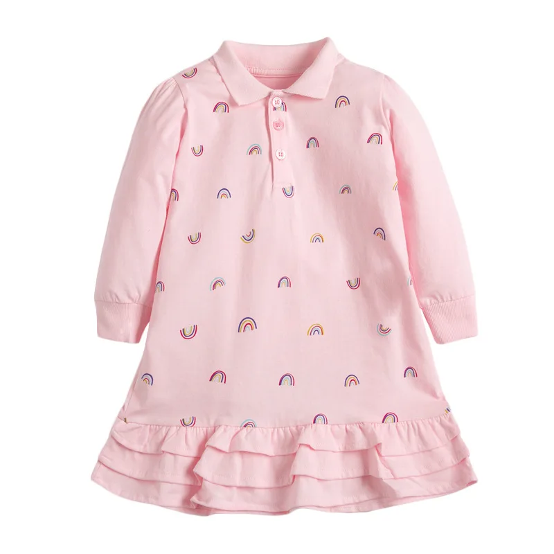 Хлопковое платье с длинным рукавом и круглым вырезом, на возраст 2-...