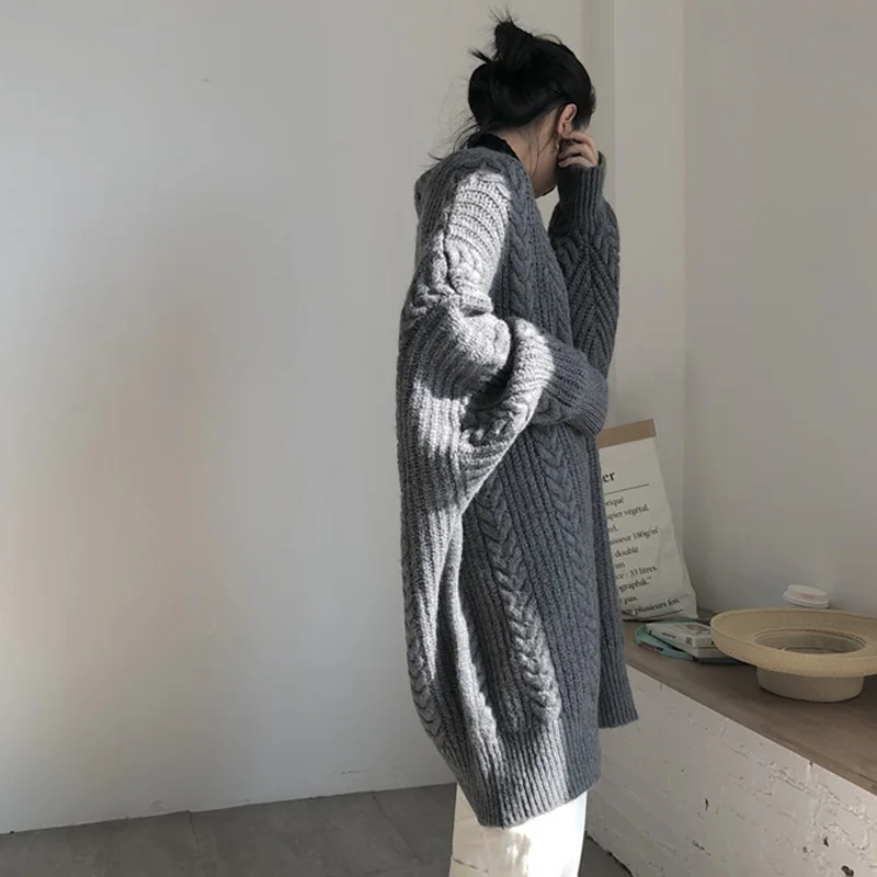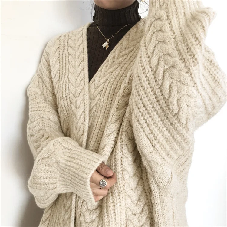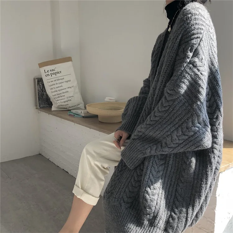 Женский вязаный кардиган в стиле ретро, осенне-зимний плотный Свободный Длинный свитер, простая женская одежда