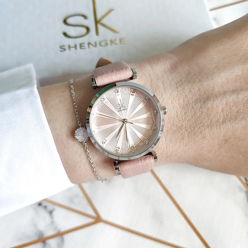 2019 роскошные женские часы Shengke женские кварцевые часы кожа бра...