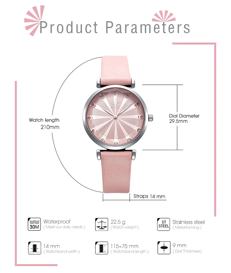 Часы Shengke женские наручные с кожаным ремешком, роскошные розовые...