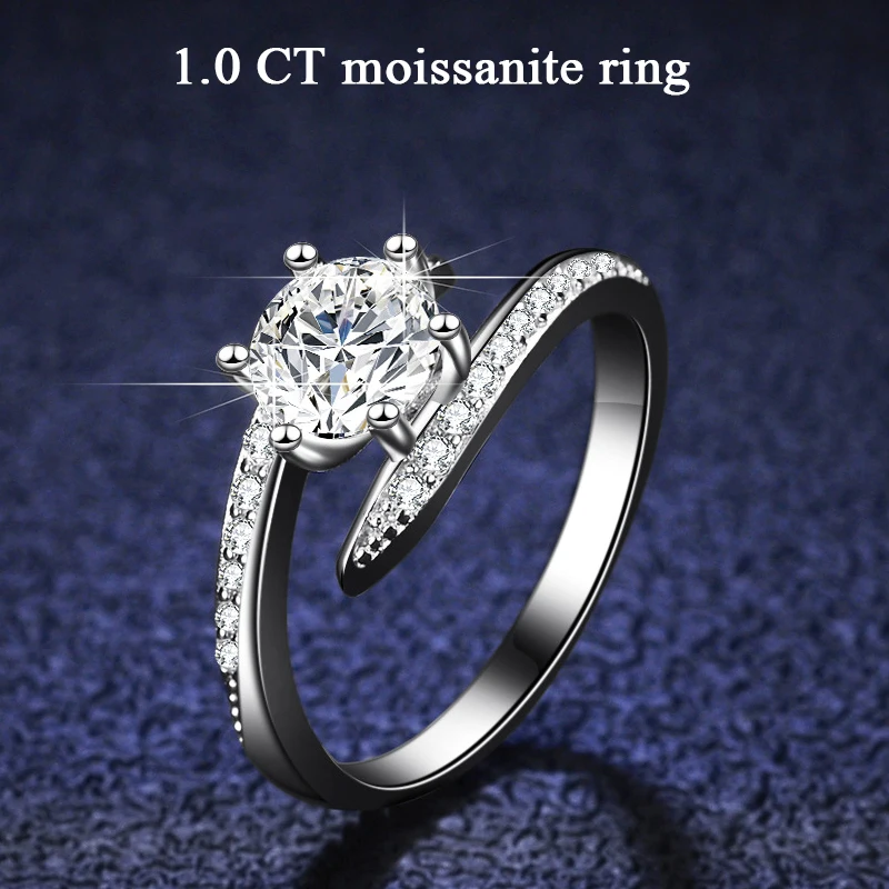100% настоящий Муассанит Свадебные кольца Круглый протектор блестящего алмазного 6 зубец согнутый гвоздь Обручение кольца для Для женщин Стерлинговое Серебряные ювелирные изделия
