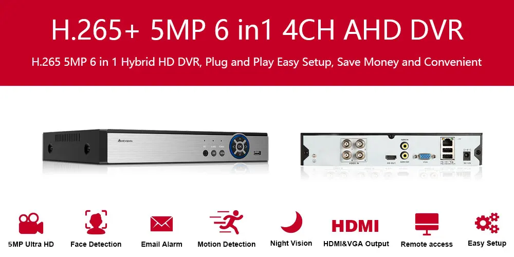 AHD DVR FeaturesHDMI&VGA output / Motion detection/email Alert,