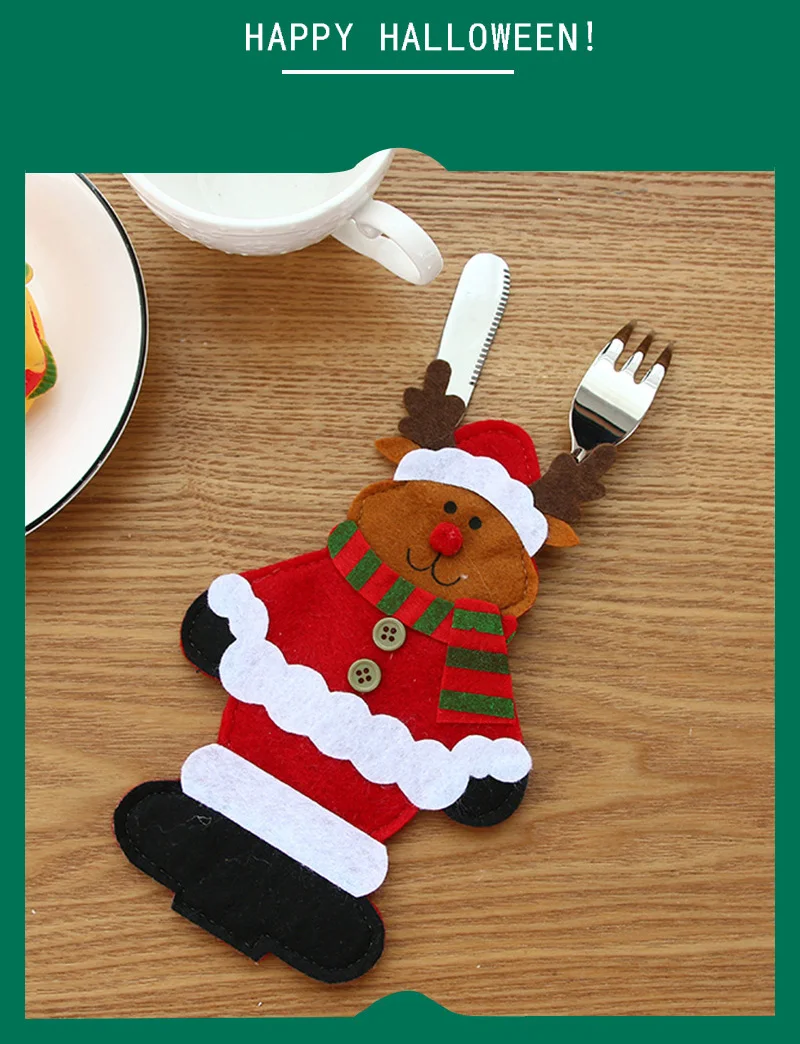 Рождественский чехол для столовых приборов, милый тканевый чехол в ...