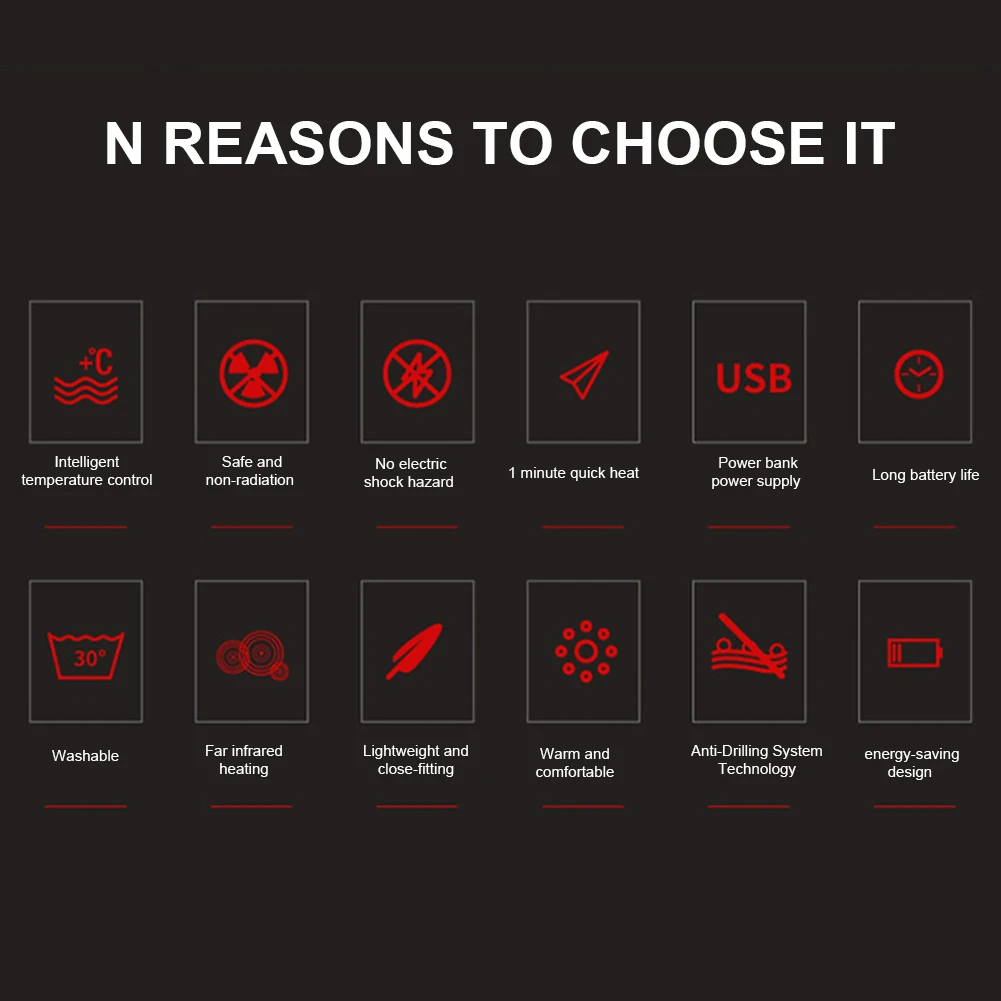 * 4. Жилет имеет 10 нагревательных зон, которые могут способствовать циркуляции крови и держать вас в тепле, нагревать живот, спину, талию и живот, чтобы сохранить тепло.