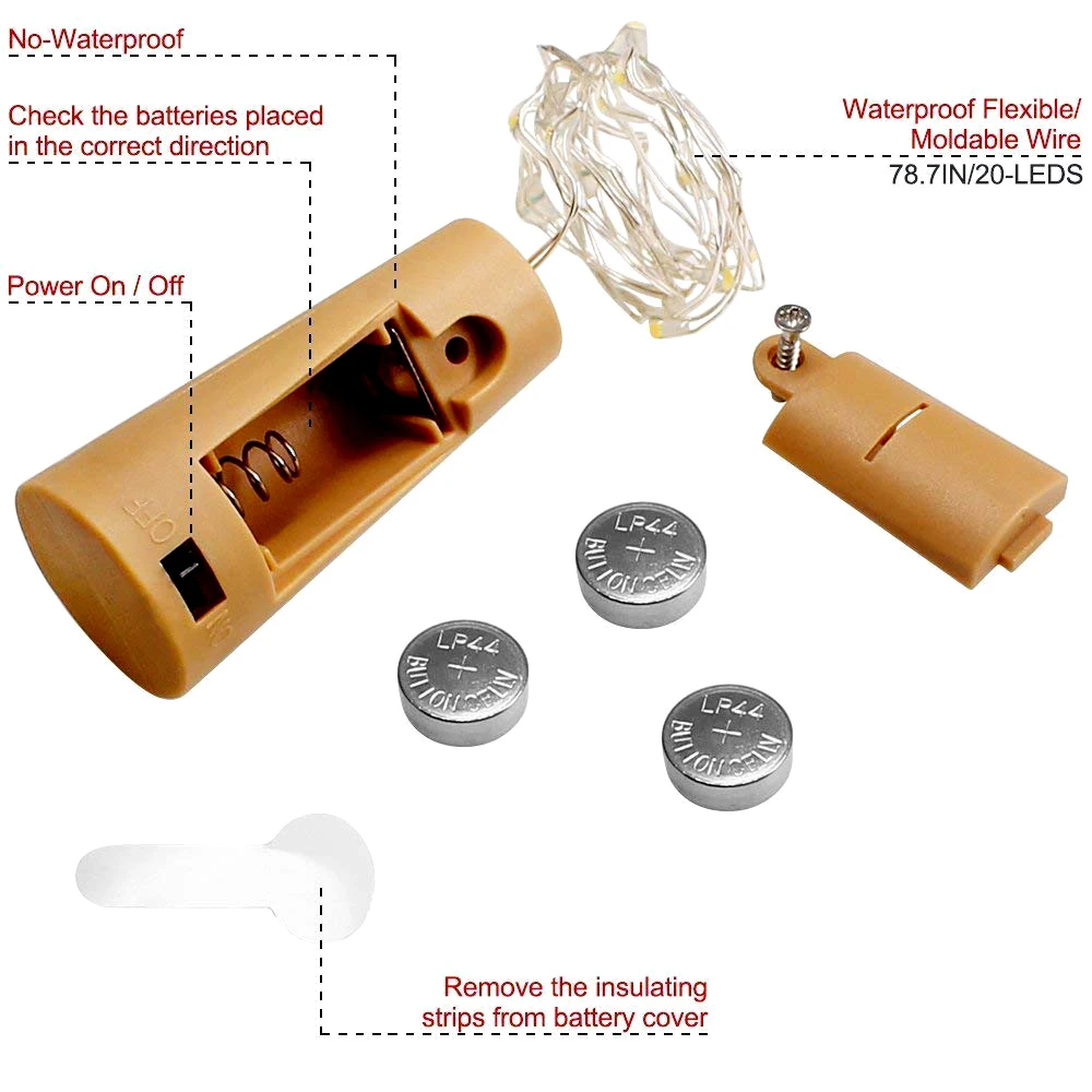 Особенности:Лампу следует держать вдали от сырости, дождя или туманаЭнергосбережение, легко sharp.Простота установки и длительный срок службыПрочная и термостойкая серебряная проволока.Гибкая медная проволока может легко создавать нужные формы.Очень низкий нагрев, кроме экономии энергии на светильникХарактеристики:Состояние на 100% абсолютно новыйТип: светодиодный светильник Феи для стеклянной бутылкиКоличество СВЕТОДИОДНЫЙ: 20 шт.Длина: 2 м/6,6 средства ухода за кожей стопМатериал провода: серебристыйПереключатель: Переключатель ВКЛ/ВЫКЛПитание от аккумулятора: 3 батареи LR44Светильник: теплый белый/цвет насыщенный/синий/зеленый/красный/розовый/желтый/фиолетовыйРежимы: постоянное включениеПрименение:Эти огни отлично подходят для украшения в любом месте, романтического декора, подходят для вечерние, квадратные, садовые, внутренние украшения, наружные украшения и т. Д.!Посылка включает в себя:1x2 м светодиодный светильник