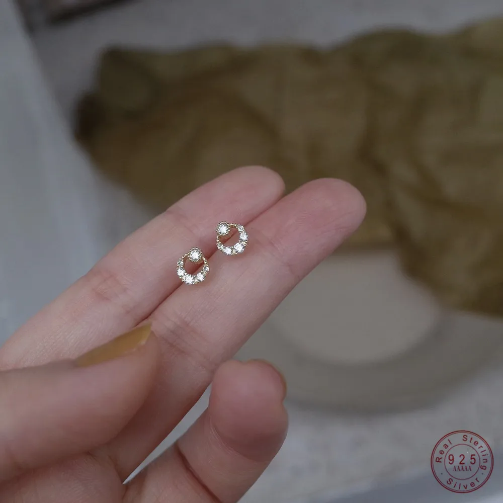 Серьги-гвоздики женские из серебра 925 пробы, с паве из кристаллов