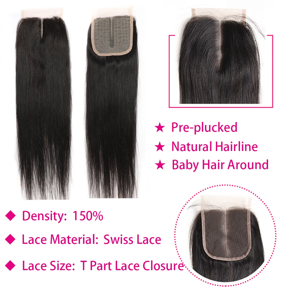 Бразильские прямые волосы 3 пряди с закрытием натуральные кудрявые ...