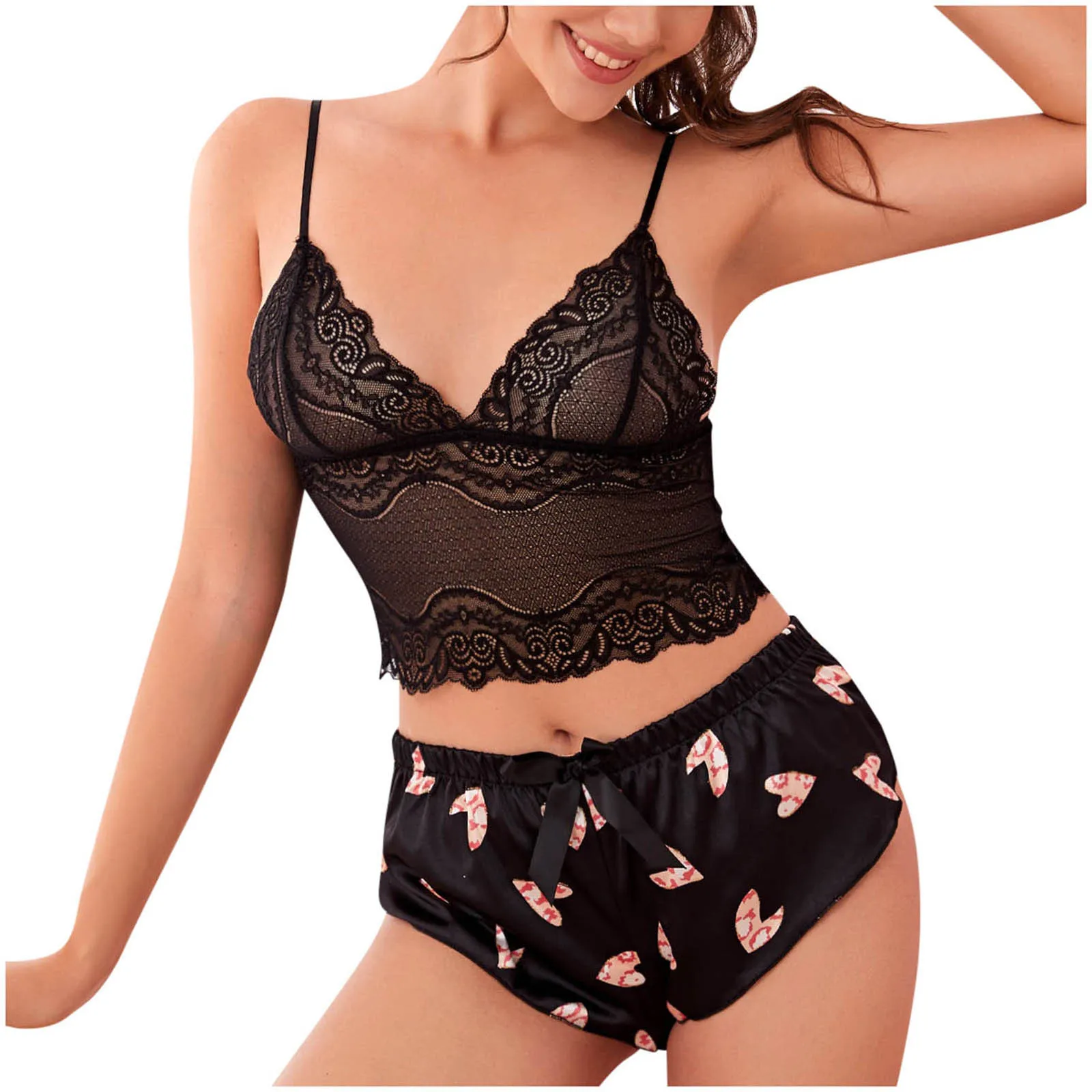 Женский кружевной пижамный комплект, женская одежда для сна, женская ночная сорочка, кружевная Пижама на бретельках, нижнее белье