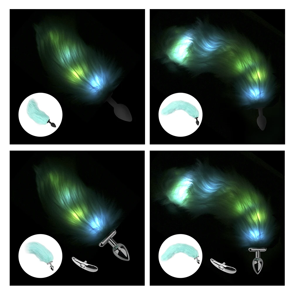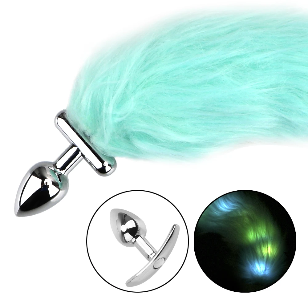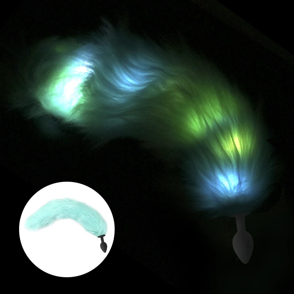 Яркая Анальная пробка Slave хвост для косплея, игры для взрослых, светящийся синий Анальная пробка лисий хвост, интимные игрушки для женщин, эротический продукт для взрослых