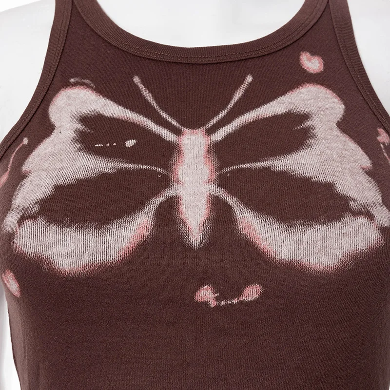 Y2K с винтажным принтом из бабочек, коричневый Топы Инди в уличном ...