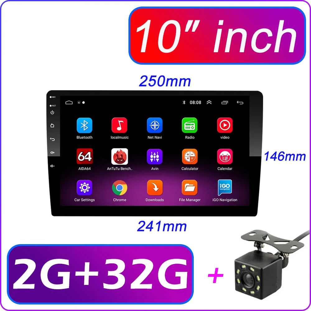 Автомагнитола 2 Din на Android, мультимедийный плеер с 10 "экраном, GPS, Wi-Fi, Bluetooth, для Toyota, Volkswagen, Hyundai, киа, Renault, Suzuki, 1 ГБ, 2 ГБ, 4 Гб