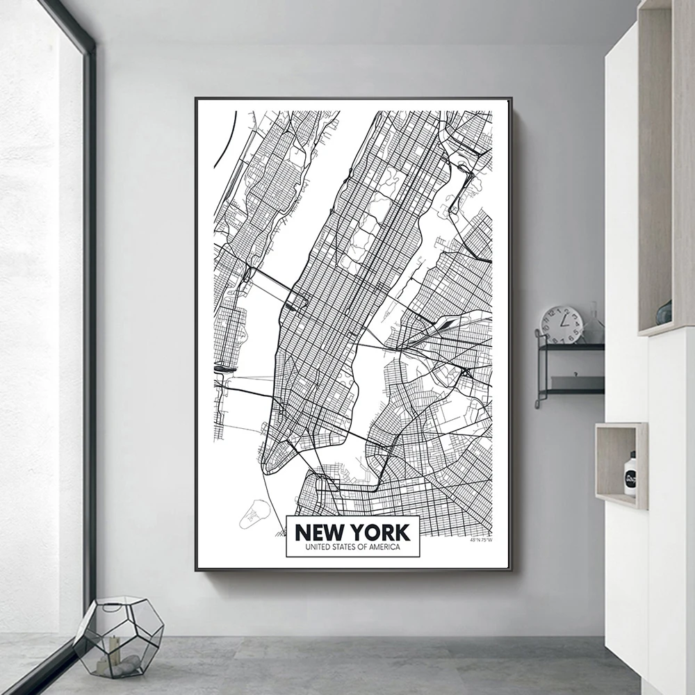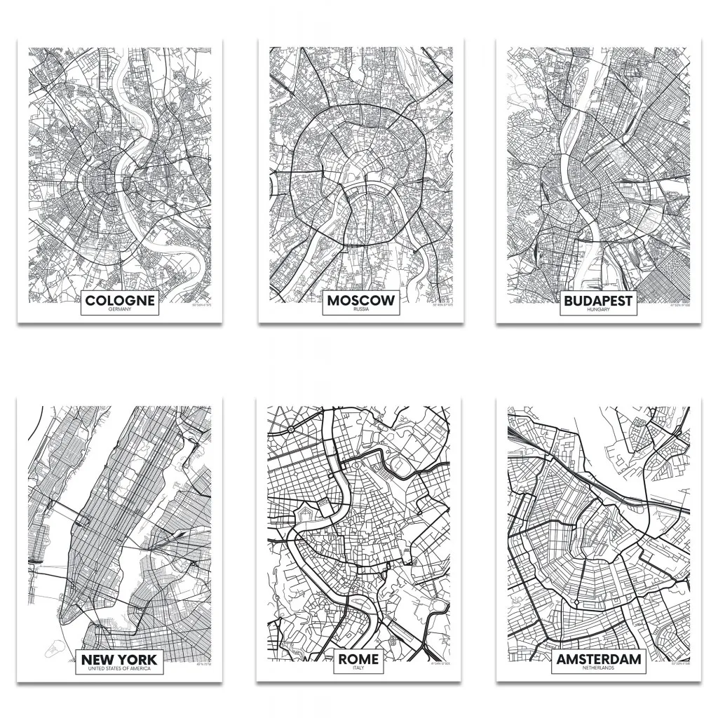 Черная линия, городской стиль, обычный плакат, Париж, Лондон, Нью-Йорк, художественные принты на холсте и плакат, Настенная картина для Нордического стиля, домашний декор