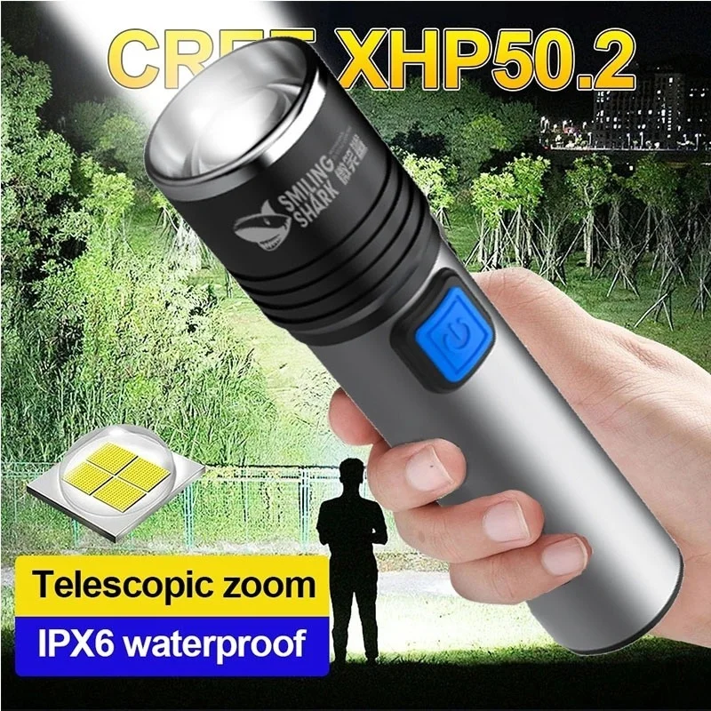 Перезаряжаемый светодиодный фонарик, водонепроницаемый фонарик с 4 режимами освещения, масштабируемый со встроенным аккумулятором 18650, для рыбалки, Походов, Кемпинга