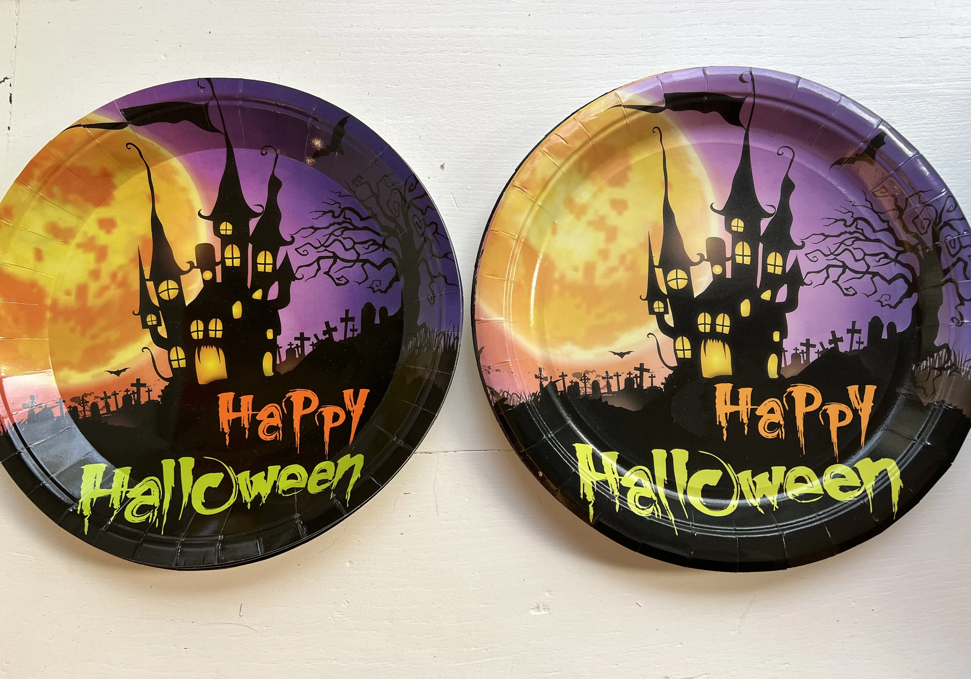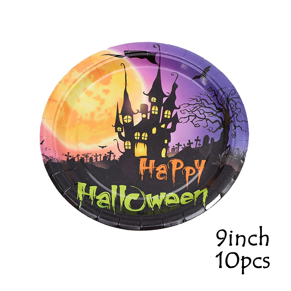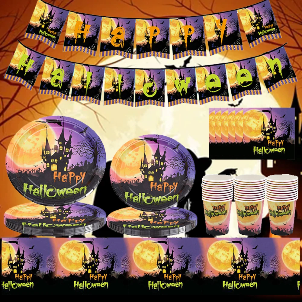 Хэллоуин Фиолетовый замок одноразовая столовая посуда Хэллоуин украшения для дома ужас дом вечеринка орнамент бумажные тарелки и стаканы
