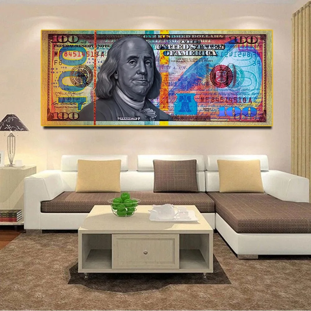 Современная Художественная живопись на холсте, постеры и принты, креативное изображение на 100 долларов, картина для украшения стен гостиной