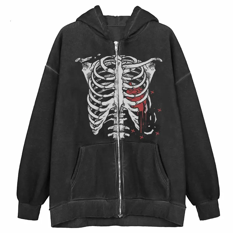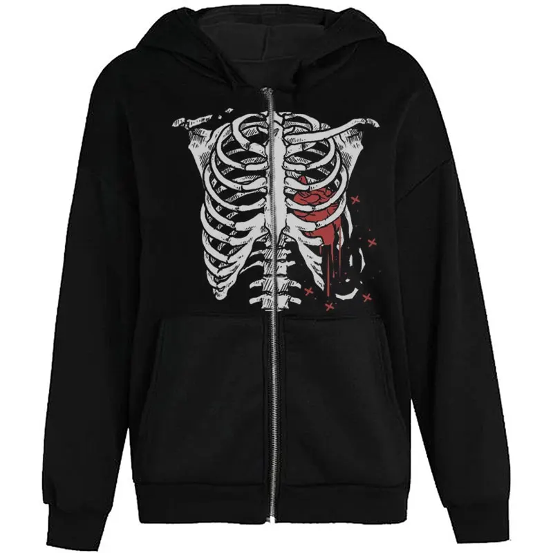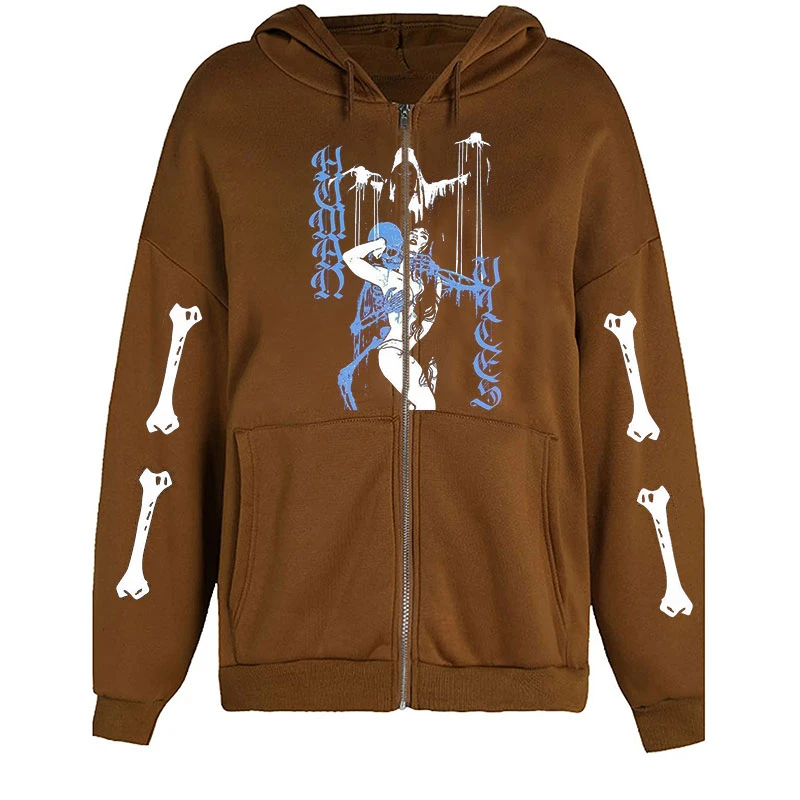Y2K свитшот в готическом стиле bergroen Женская толстовка с капюшоном на молнии в стиле ретро 90-х годов